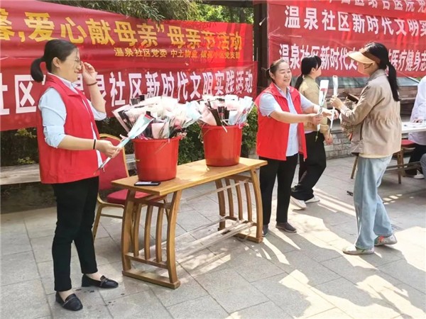 除了献礼花束,春都华府、银苑小区、宏苑小区等物业管理处还联合街道、业委会、商家一同开展了拍照打卡、爱心义诊、便民理发等活动,让妈妈和她们的家人一同感受中土物业的别样祝福。